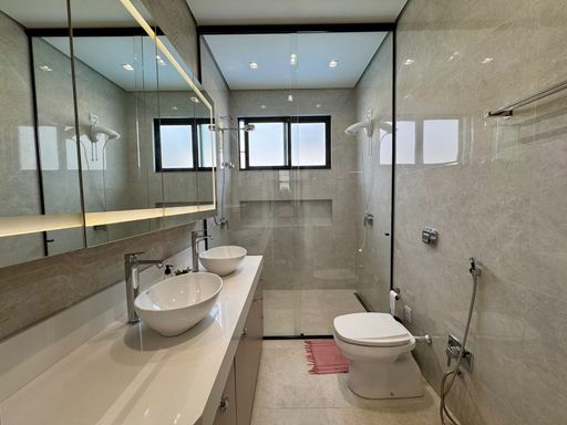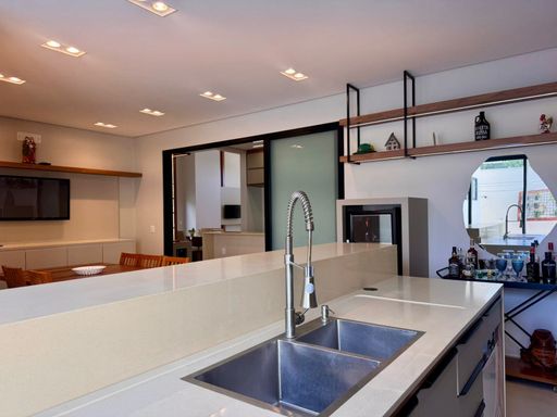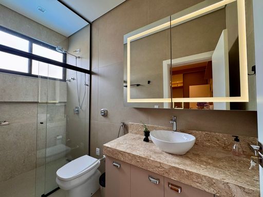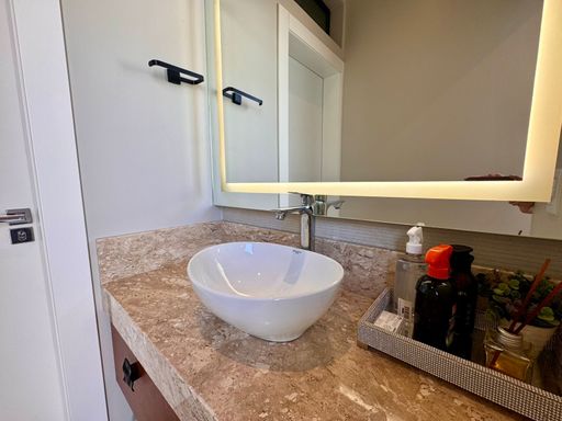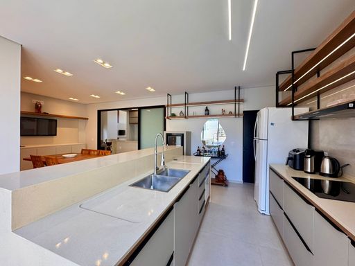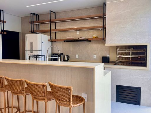 Os móveis sob medida valorizam cada espaço e trazem elegância e funcionalidade aos ambientes. A cozinha é moderna e prática, equipada com fogão por indução, forno elétrico e lava-louças, que permanecem no imóvel, facilitando o dia a dia e tornando o espaço perfeito para quem gosta de cozinhar e receber. O lavabo complementa a área social com praticidade, enquanto a lavanderia independente e a despensa garantem organização e fluidez na rotina.