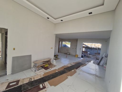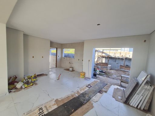 - Cozinha e sala de estar e jantar em conceito aberto;